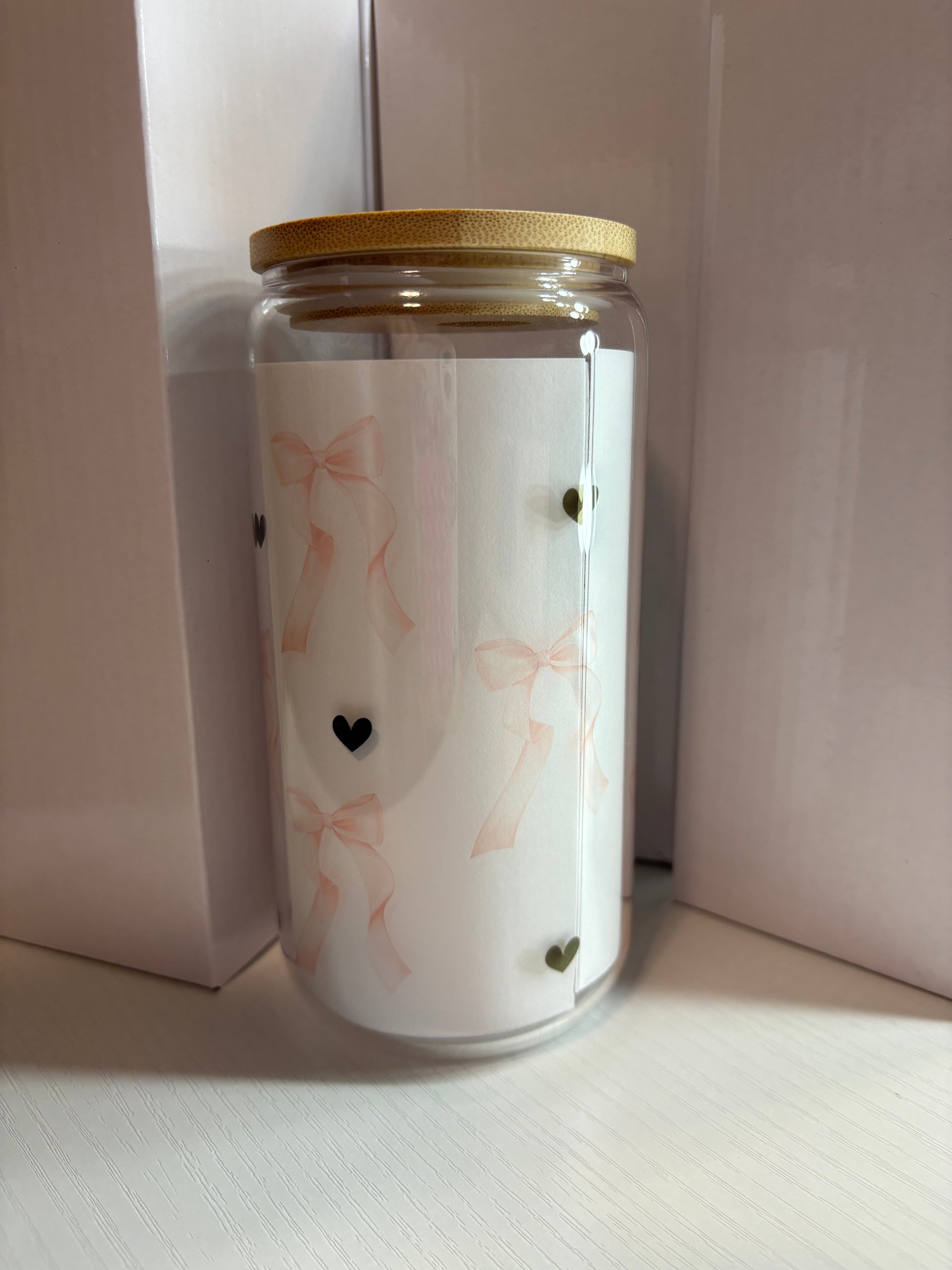 Pink Bow 16oz Glass Cup